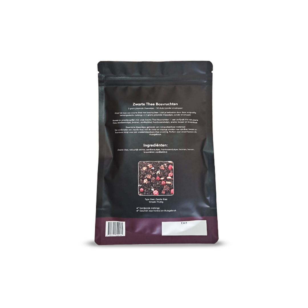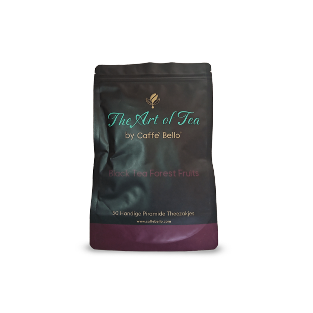 Taste the luxury of black tea forest fruits. Enjoy the luxury of Black Tea Forest Fruits in these 2 gram pyramid tea bags without envelope. Order today and be enchanted by this delicious forest fruit blend.