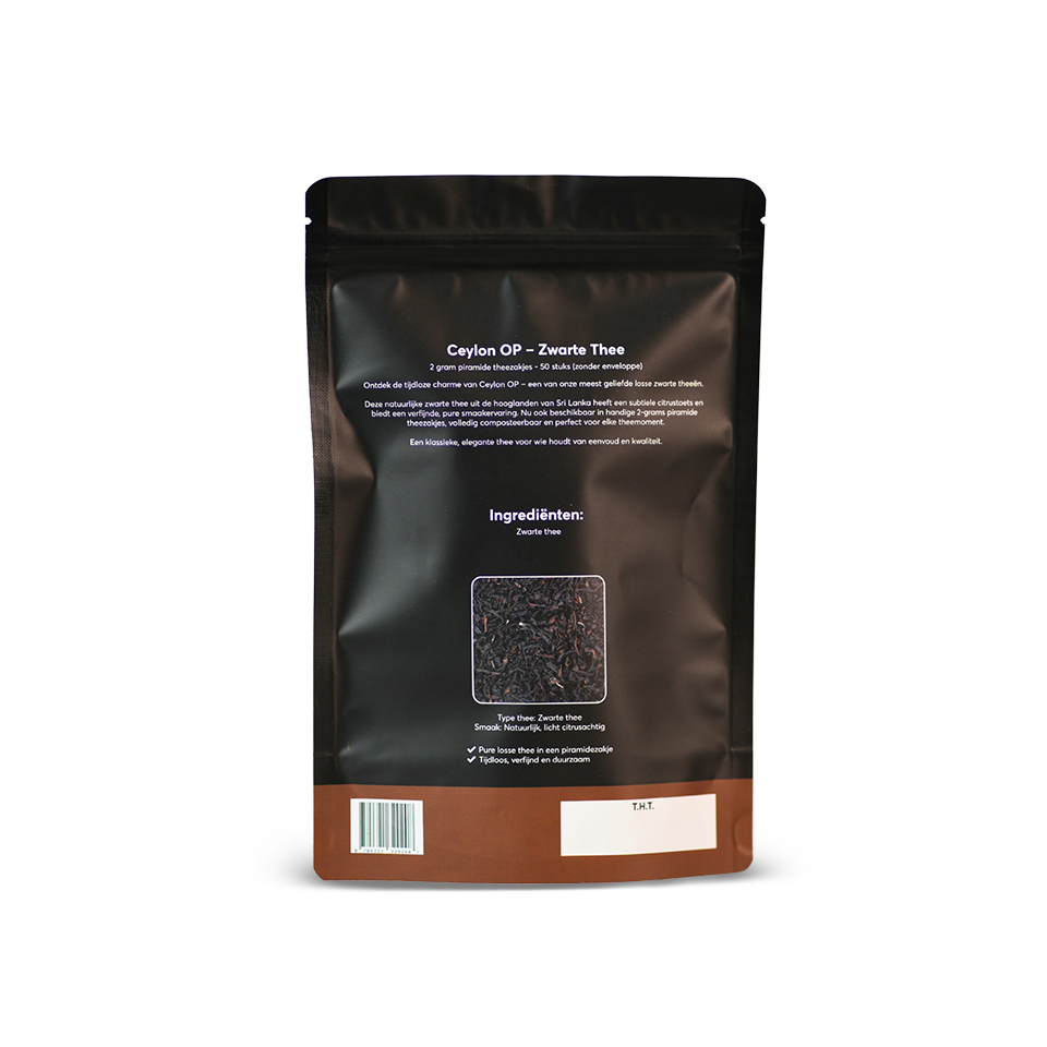 Enjoy the natural taste of Ceylon OP with our 2 gram pyramid tea bags, now available in a 50-pack without envelope.