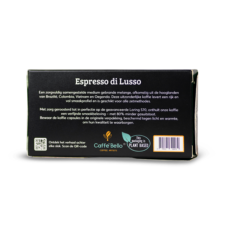 Espresso Classic offers a refined blend of carefully selected coffee beans from the highlands of Brazil, Colombia, Vietnam and Uganda. This medium roasted coffee is characterized by a full, balanced taste and is perfectly suited for various brewing methods. Enjoy a classic espresso experience with these high-quality coffee capsules from Caffè Bello.